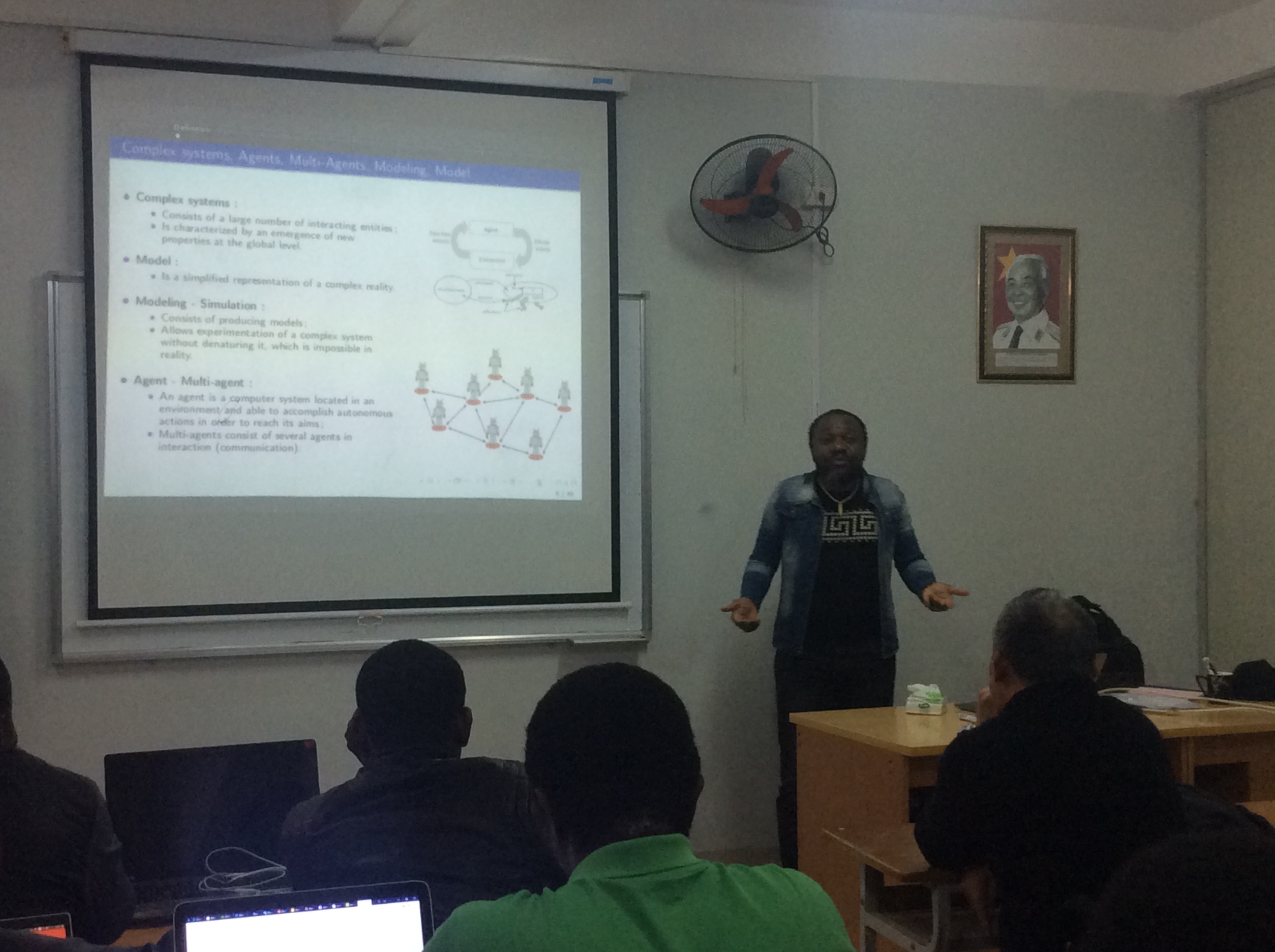 Comm de coutume, à la fin de ses recherches il a présenté les résultats de ses recherches aux étudiants en Master 1 de l’Institut Francophone International. En gros l’objectif ici était de montrer aux étudiants que les mathématiques et l’intelligence artificielle peuvent être appliquées pour comprendre la dynamique des maladies séparément, mais qu’il est possible de coupler ces deux approches pour ressortir des modèles dits HYBRIDES. Ces derniers devraient bénéficier des avantages des deux façons de faire.